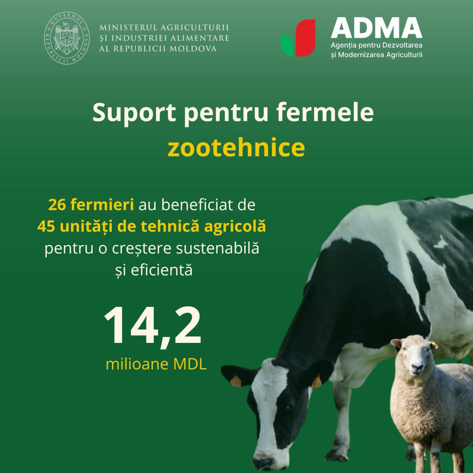 ADMA a susținut circa 1200 de fermieri și a facilitat modernizarea sectorului agricol prin finanțări totale de circa 1,13 miliarde de lei.
