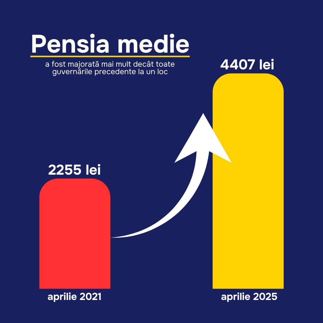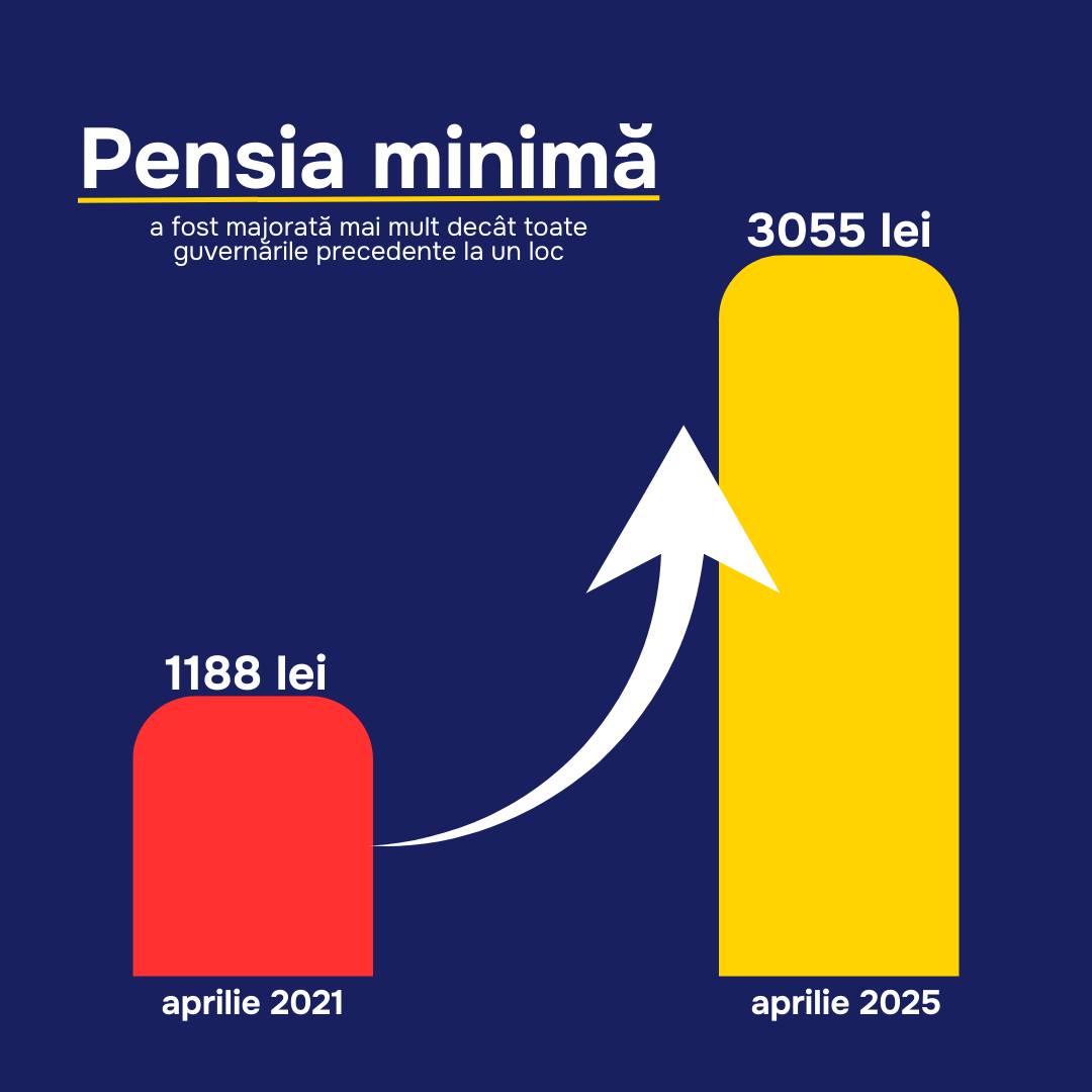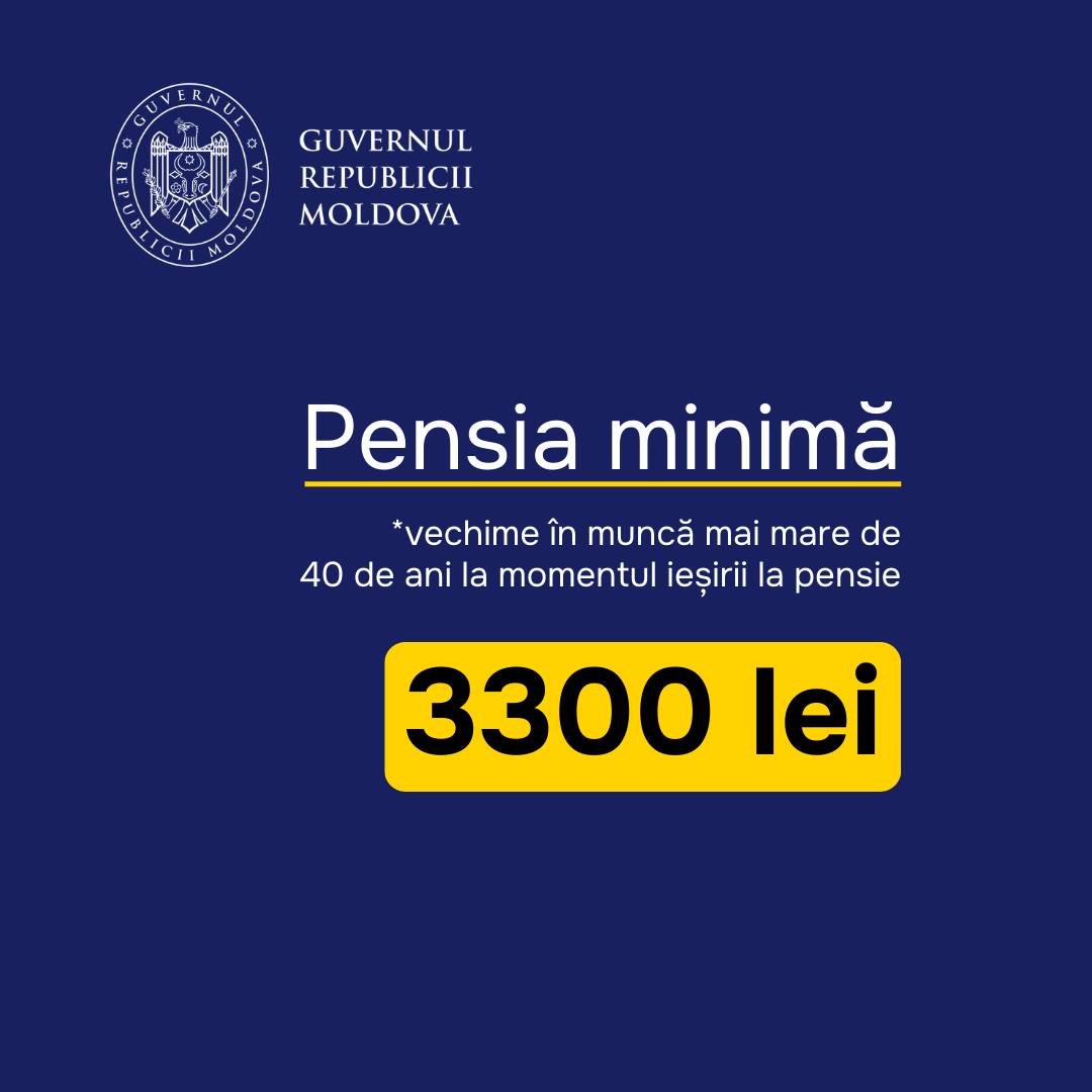 În ultimii ani, pensiile au majorate constant: pensia minimă a crescut de la 1 180 de lei la 2 800 de lei, iar pensia medie s-a dublat - de la 2 000 de lei la 4 000 de lei.